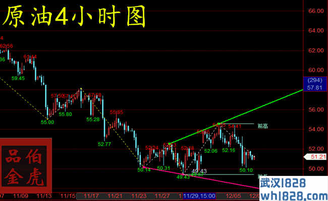原油昨日由于OPEC会议的影响行情先下探52附近支撑反弹53.3附近再次下探50.3附近支撑,晚间由于EIA数据的利多,行情直接反弹,目前在51.7附近收盘,激进开盘做多看52及53.3附近压力位,稳健在50.5附近把握多单即可,止损0.5美金,或在54.4附近把握空单看53及52附近即可。