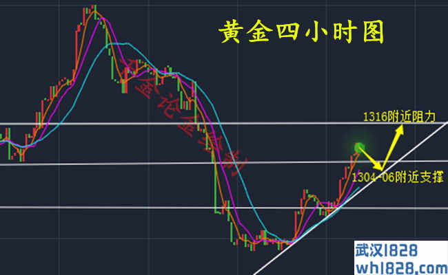 策略二:金价1310-1312空单进场,止损4个点,目标1300-1305。