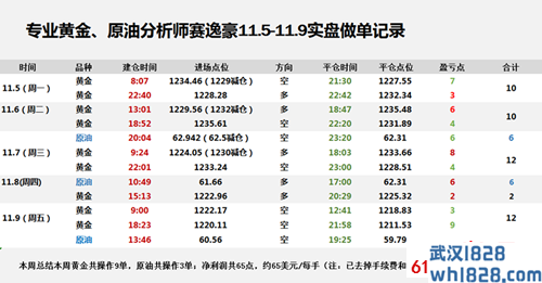本周总结本周黄金共操作9单,原油共操作3单;净利润共65点,约65美元/每手10手约合人民币438750元。
